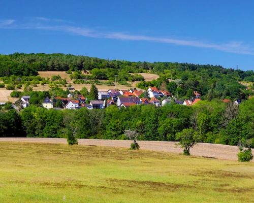 Lage: Am Ortsrand von Webenheim, umgeben von sanften Hügeln und Wäldern