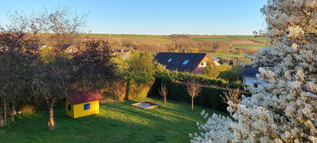 Die lichtdurchflutete Wohnung bietet einen traumhaften Gartenblick und unverbaute Sicht auf die sanften Hänge des Bliesgaus, kostenfreies WLAN, Klimaanlage in allen Schlafzimmern und dem Wohnzimmer, Heizung und einen privaten Parkplatz. Der eigene Garten lädt zum Verweilen ein – ideal für Kinder oder entspannte Stunden im Grünen. Die „Webenheim-Runde“, ein 9,2 km langer Wanderweg, beginnt direkt vor der Haustür und ermöglicht einen erlebnisreichen Ausflug in die Natur- und Kulturlandschaft des Bliesgaus.