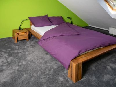 Die Ferienwohnung Aurora bietet Platz für bis zu 6 Gäste. Es gibt 2 Schlafzimmer jeweils mit einem großen Doppelbett, im Wohnzimmer befindet sich ein Ausziehsofa.